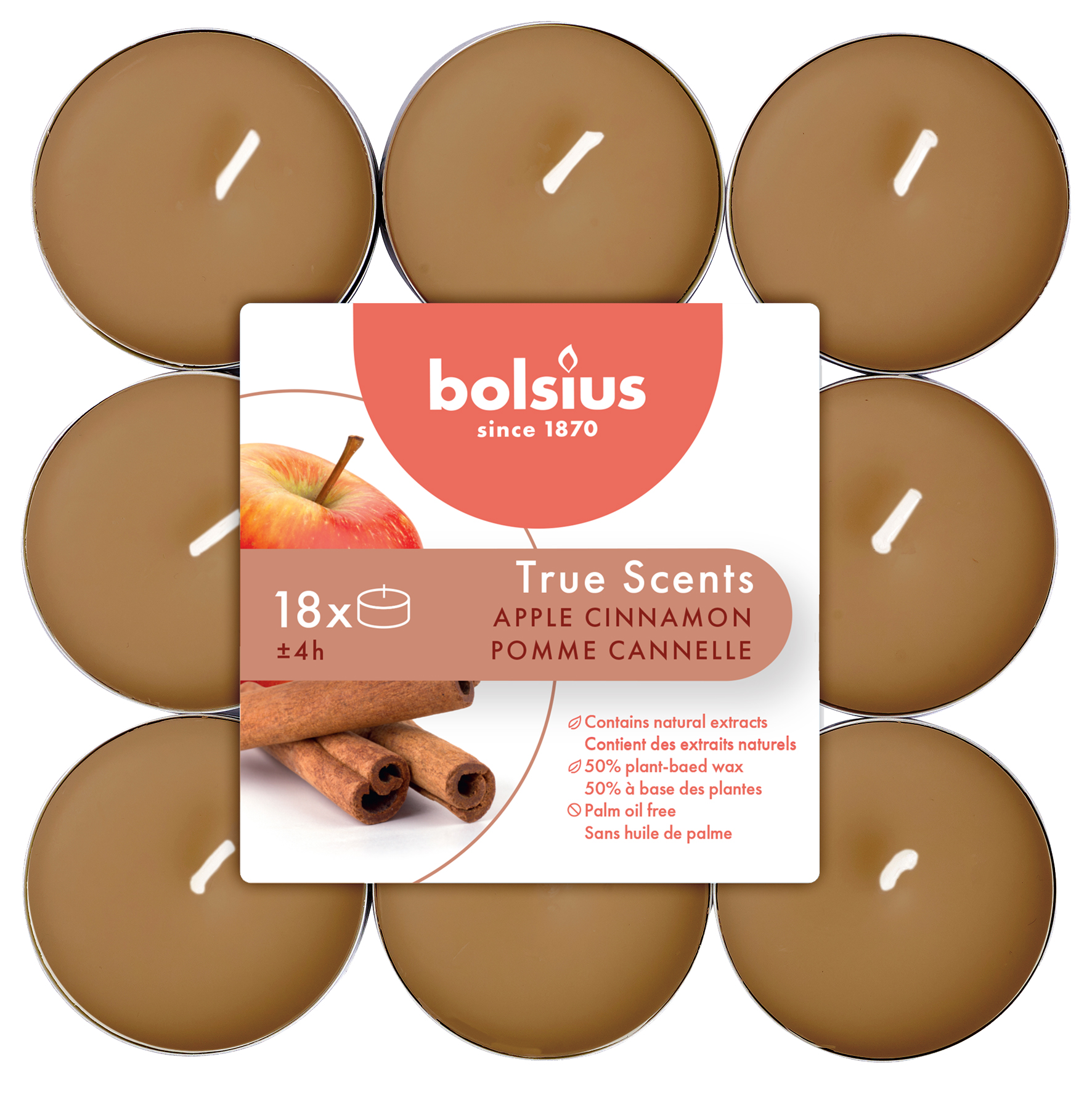 18 lõhna-teeküünalt 4h, õun/kaneel True