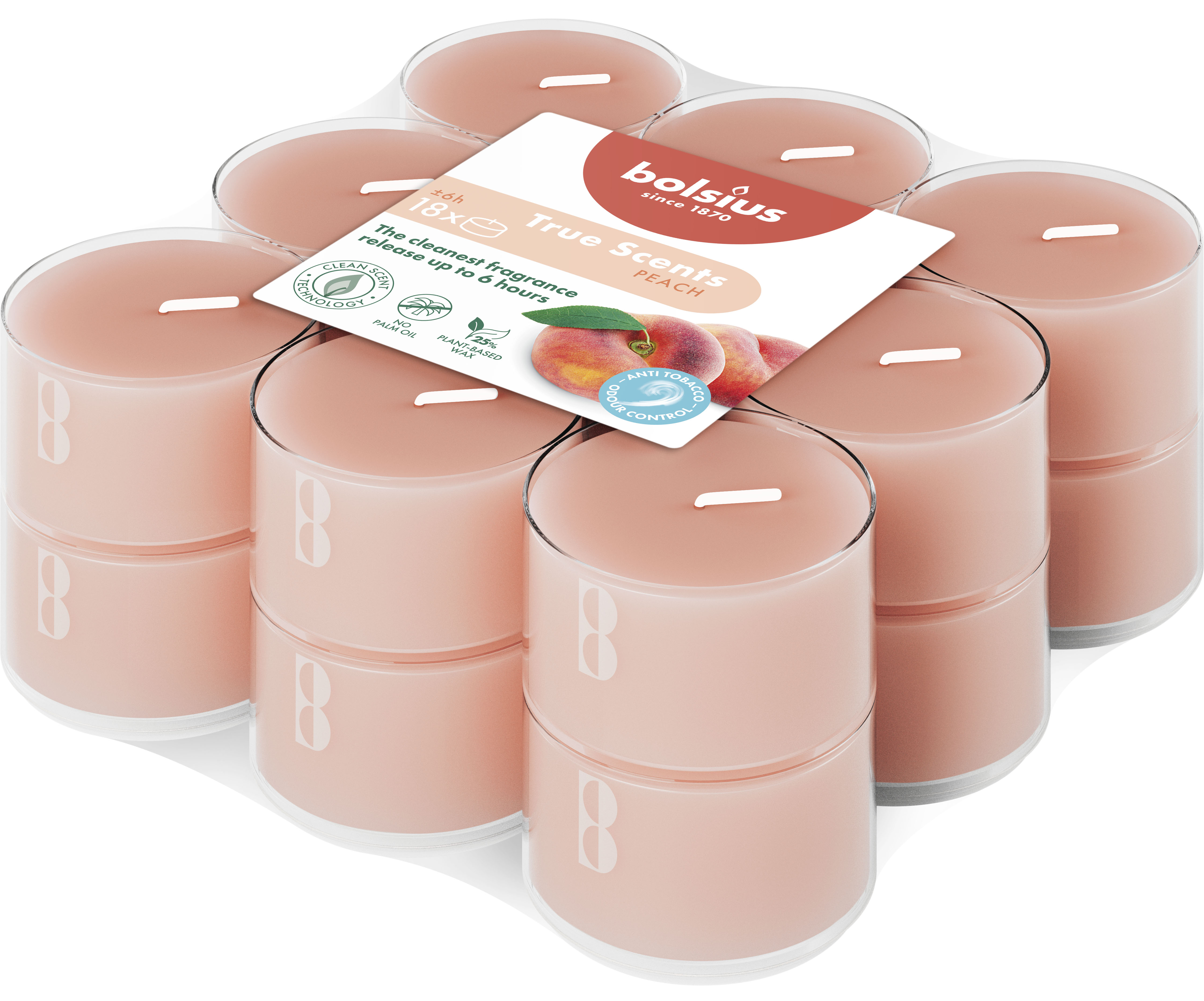 18 lõhna- teeküünalt 6h, virsik, läbipaistev