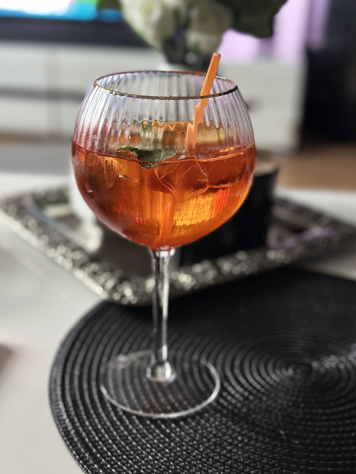 Kokteili klaas, ribbed, kuldne äär