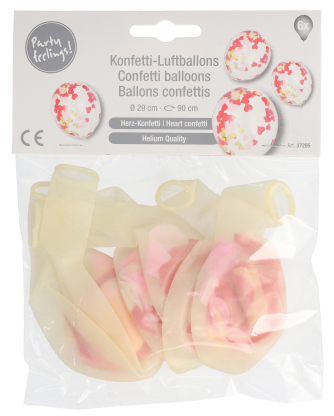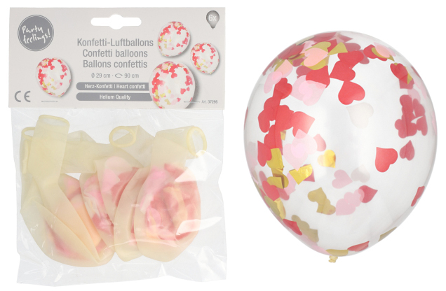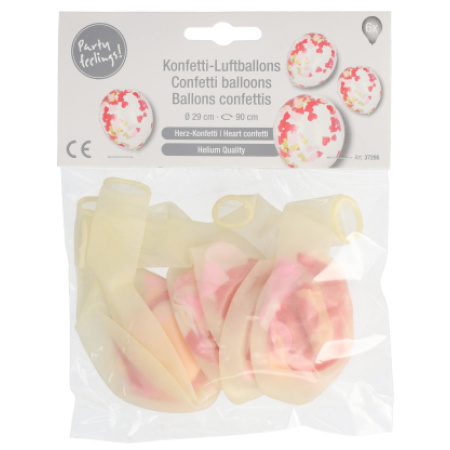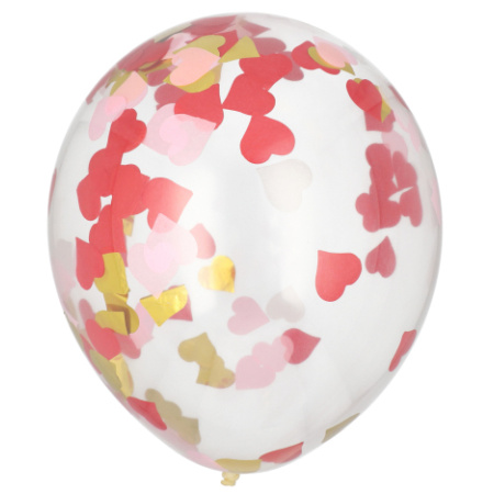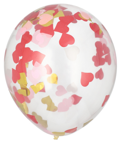 Õhupall südame konfettidega, 6tk, d.29 cm